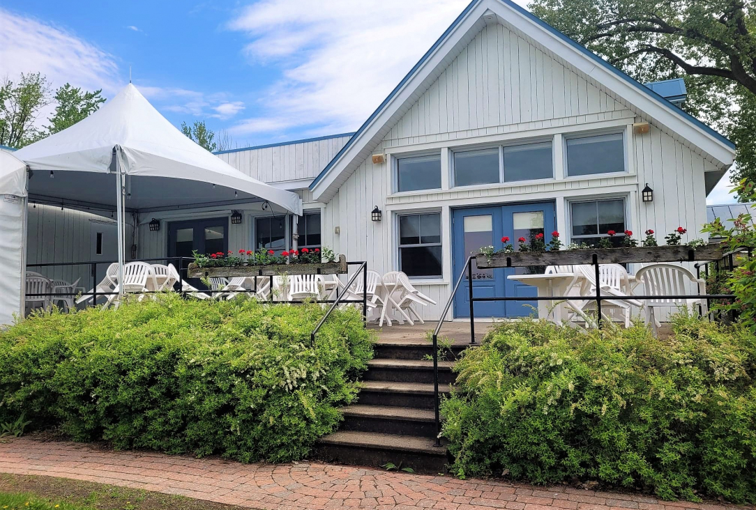 Exterior pavilion facing the Inn main hall, fenestration on 3 sides with view of the Richelieu river